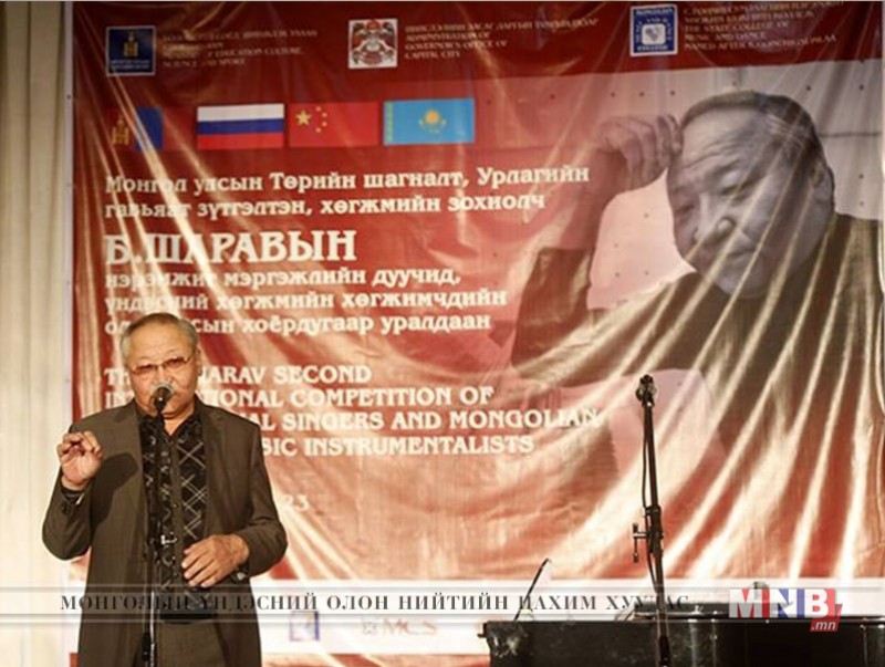 Монгол Улсын Төрийн шагналт, Урлагийн гавьяат зүтгэлтэн, хөгжмийн зохиолч Б.Шаравын нэрэмжит мэргэжлийн дуучид, үндэсний хөгжмийн хөгжимчдийн олон улсын хоёрдугаар уралдааны нээлт өчигдөр боллоо. Хөгжим бүжгийн коллежийн байранд болсон нээлтийн арга хэмжээнд Монгол Улсын Төрийн шагналт, Урлагийн гавьяат зүтгэлтэн, хөгжмийн зохиолч Б.Шарав, МУГЖ Г.Эрдэнэбат болон уралдаанд оролцогчид хүрэлцэн ирсэн байв. Уралдааныг Боловсрол, соёл, шинжлэх ухаан, спортын яам, нийслэлийн Засаг даргын Тамгын газар, Хөгжим бүжгийн коллеж хамтран зохион байгуулж байна.