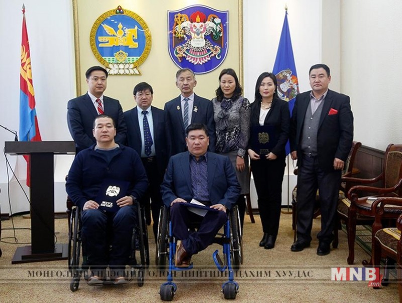 Хөгжлийн бэрхшээлтэй иргэдийн эрхийг хамгаалах олон улсын өдрийг тохиолдуулан нэр бүхий иргэдийг Нийслэлийн Засаг даргын орлогч Д.Энхтөр нийслэлийн “Жуух бичиг”-ээр шагнаж урамшууллаа. Баянзүрх дүүргийн Нийгмийн бодлогын хэлтсийн мэргэжилтэн П.Гэрэлтуяа, Монголын тэргэнцэртэй иргэдийн үндэсний холбооны төлөөлөл Б.Ганбаатар, ажилтан Н.Эрдэнэтөгс нарыг нийслэлийн “Жуух бичиг”-ээр, Хөгжлийн бэрхшээлтэй иргэдийн байгууллагуудын үндэсний холбооны ерөнхийлөгч Ц.Оюунбаатарыг нийслэлийн “Тэргүүний ажилтан” тэмдгээр шагнасан юм.