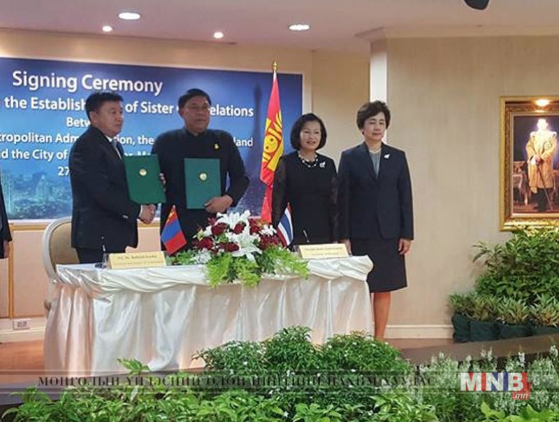 Нийслэлийн Засаг дарга бөгөөд Улаанбаатар хотын Захирагч С.Батболд болон Бангкок хотын дарга, Цагдаагийн генерал Асвин Кванмыанг нар хоёр хотын урт хугацааны найрсаг харилцаа, хамтын ажиллагаа, хот хоорондын харилцан ойлголцлолыг бэхжүүлэх үүднээс ах дүүгийн найрамдалт харилцаа тогтоох хэлэлцээрт гарын үсэг зурлаа.