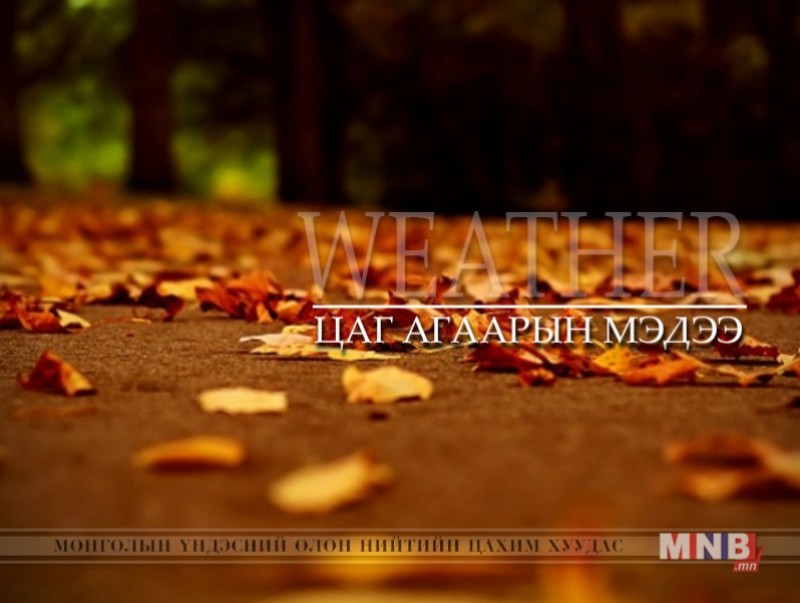 ТӨВИЙН АЙМГУУДЫН НУТГААР: Солигдмол үүлтэй. Бороо орохгүй. Салхи баруун өмнөөс секундэд 6-11 метр. Хангай, Хөвсгөл, Хэнтийн уулархаг нутгаар шөнөдөө 1 хэм хүйтнээс 4 хэм дулаан, өдөртөө 13-18 хэм, бусад нутгаар шөнөдөө 3-8 хэм, өдөртөө 18-23 хэм дулаан байна.