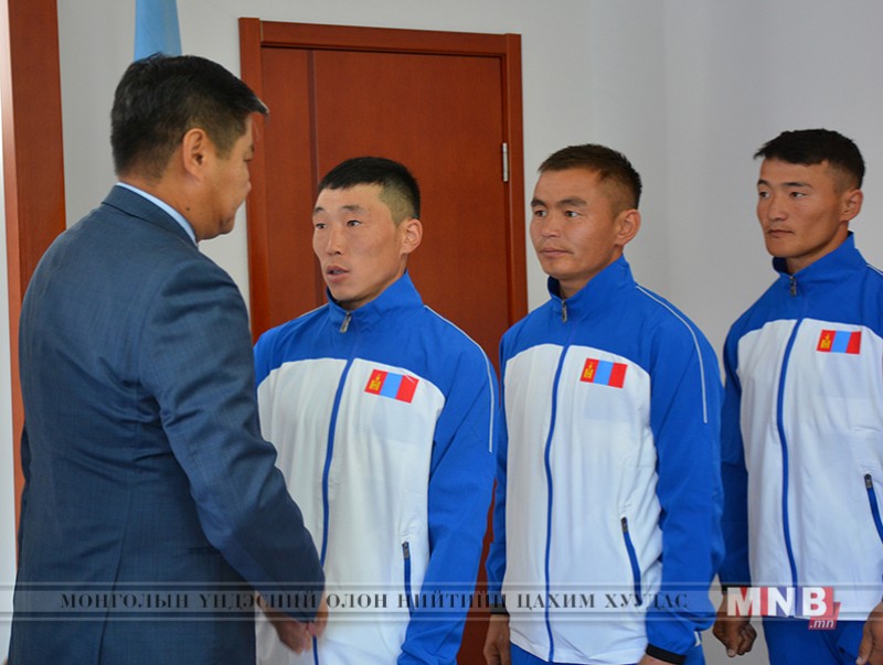 | Дэлхийн аварга шалгаруулах тэмцээнд оролцох баг тамирчдад Онцгой байдлын албаны тугийг гардуулан өглөө | ||