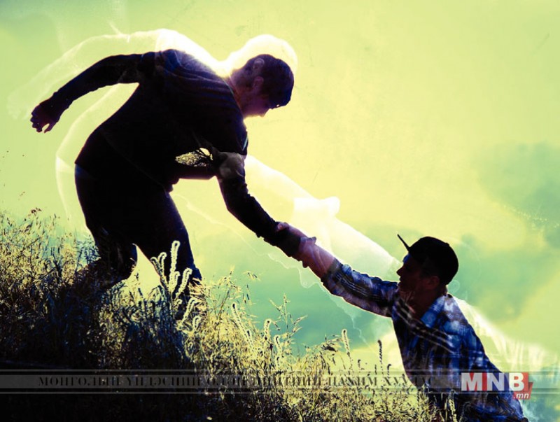 -Намаг түүнийг хүчтэй сорон доошилж байлаа. Үүнийг харсан найз нь маш хурдан сэлж ирэн намгаас найзыгаа татаж гарган аварчээ. Аврагдсан найз нь намгаас гарсны дараа нэг том хадан дээр