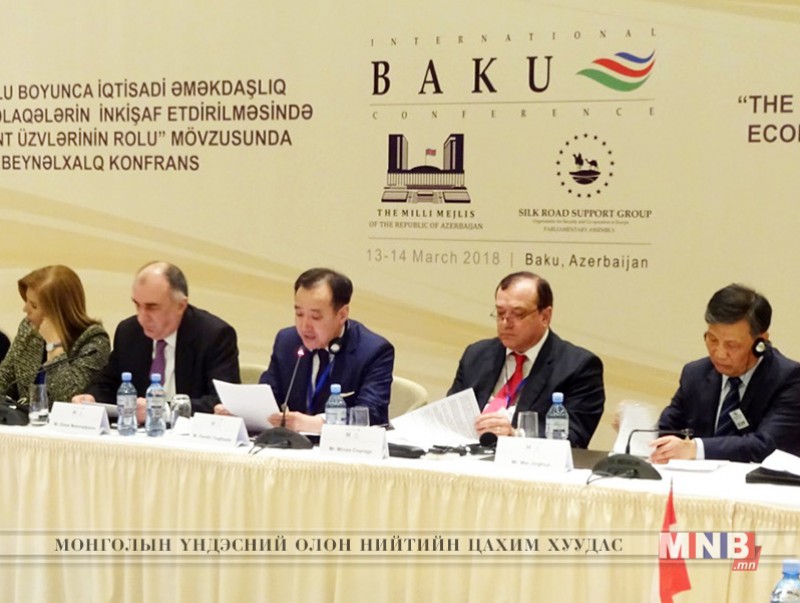“Торгоны замын эдийн засгийн бүс дэх хамтын ажиллагаа, соёлын харилцааг бэхжүүлэхэд парламентын гишүүдийн гүйцэтгэх үүрэг” сэдвийн дор энэ сарын 13-14-ний өдрүүдэд Бүгд Найрамдах Азербайжан Улсын Баку хотноо болж буй Европын аюулгүй байдал, хамтын ажиллагааны байгууллага (ЕАБХАБ)-ын Парламентын Ассамблей дахь “Торгоны замыг дэмжих бүлэг”-ийн Олон улсын анхдугаар бага хуралд Монгол Улсын Их Хурлын гишүүн Д.Цогтбаатар, Ж.Энхбаяр нар оролцож байна.