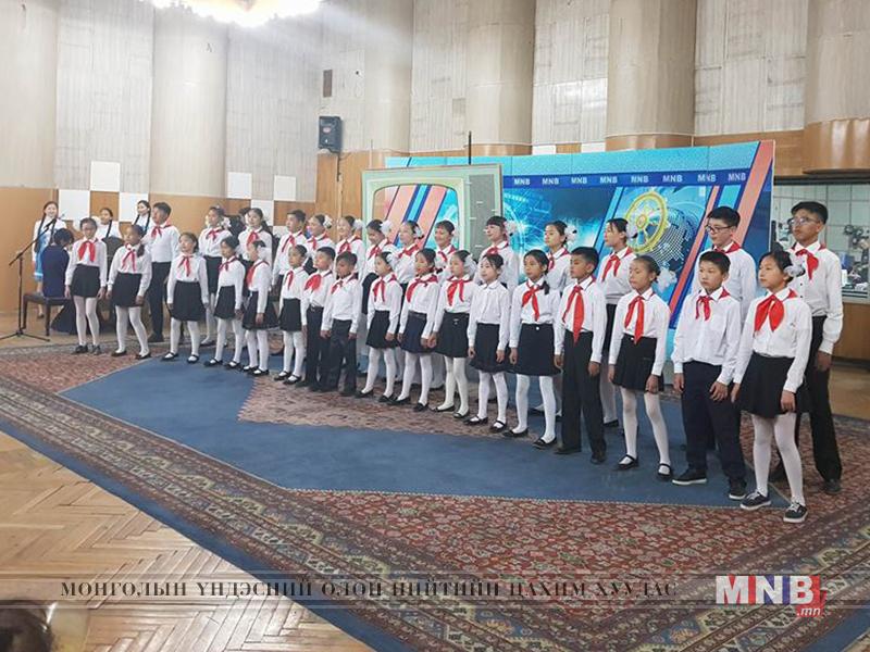 Шагнал гардуулах ёслолын үеэр “Улаан бүч” чуулгын уран бүтээлч хүүхдүүд ая дуугаа өргөсөн юм.