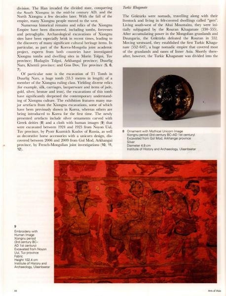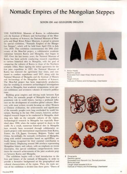 ШУА-ийн түүх, археологийн хүрээлэнгийн Хүннү ба эртний түүхийн судалгааны салбарын эрхлэгч, доктор Г.Эрэгзэнгийн Seiyon Oh “Nomadic Empires of the Mongolian Stepps” нэртэй өгүүлэл “Arts of Asia” сэтгүүлд хэвлэгджээ.