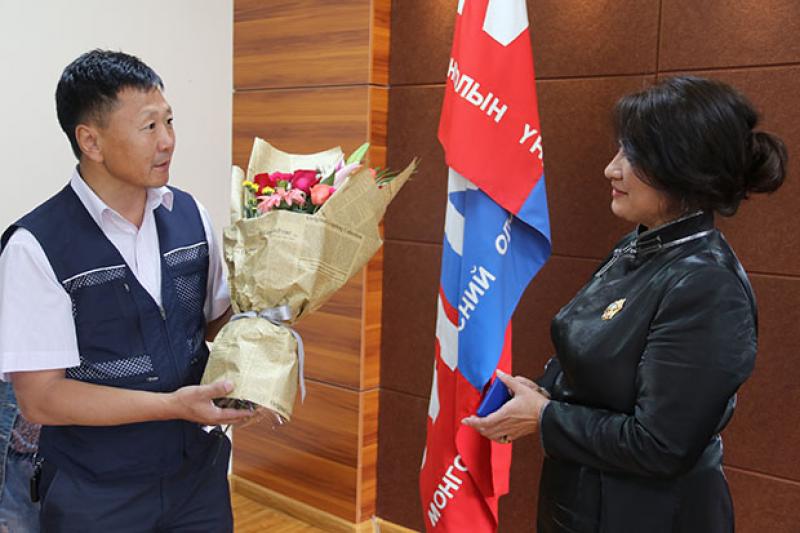 Улсын баяр наадмыг тохиолдуулан олгосон энэхүү баярт үйл явдалд хамтран ажиллаж байсан нөхөд нь оролцсон юм. Шагналыг МҮОНР-гийн захирал Г.Батзаяа гардуулсан юм.