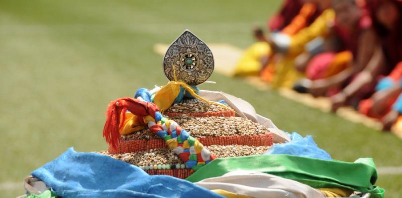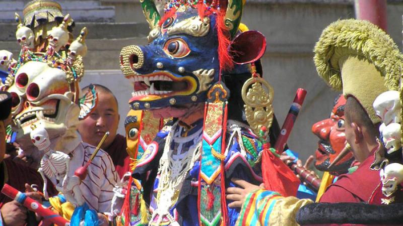 Цамын үүсэл: Цам гэдэг нь гар хөлийн янз бүрийн хөдөлгөөнийг илэрхийлсэн шашны бүжиг байсан бөгөөд багтай баггүй байдлаар бүжиглэдэг байв. Өөрөөр хэлбэл эртний үлгэр домгийг биетээр харуулахын тулд тэнгэр нар гэх мэтийг төлөөлсөн амьтдыг дуурайлган хийсэн баг хувцас өмсөөд тус тусын хэлээр ярьж бүжиглэдэг байжээ. YIII зууны үед Төвдийн анхны хийд болох Самьяа хийдийг барьж байгуулахад тэр үеийн Төвд орны хар зүгийн лус савдагууд элдвээр эсэргүүцэж ажил үйлсийн замд нь ихээхэн саад тотгор учруулсан гэдэг.