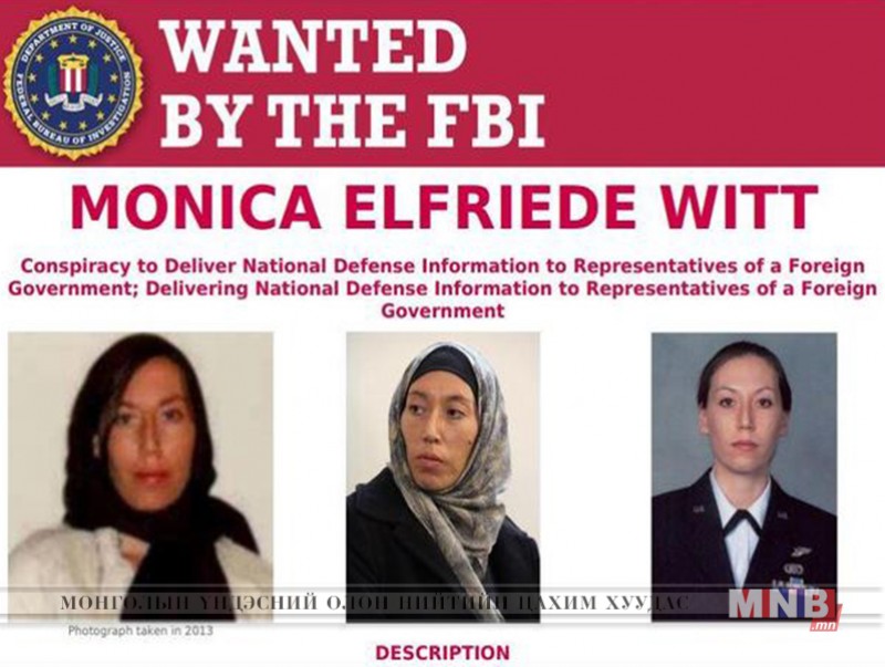 АНУ-ын агаарын хүчний мэдээлэл боловсруулах ажилтан Моника Витт хэмээх 39 настай эмэгтэйг Ираны талд цахим тагнуулын үйл ажиллагаа явуулахад нь тусалсан гэж буруутгаж буй юм байна. АНУ-ын хууль зүйн яамны мэдэгдсэнээр агаарын хүчний офицер эмэгтэй Иран руу дүрвэснийхээ дараа Ираны хакеруудтай хамтран ажиллаж, агаарын хүчний бусад ажилласдын компьютерт халдахад тусалдаг байжээ.