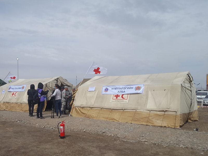 Үүний дараа дүүрэг бүр бие дааж, тусгайлан бэлдсэн талбайдаа газар хөдлөлтийн дараах эрэн хайх, аврах ажиллагаа, хээрийн эмнэлэг дэлгэх дууриалган үзүүлэх дадлага сургуулилт үргэлжлэв.