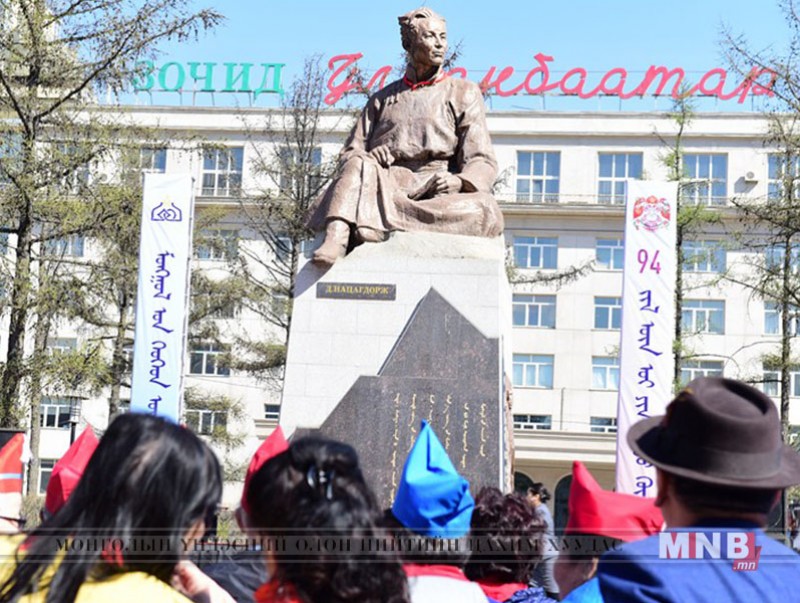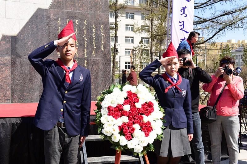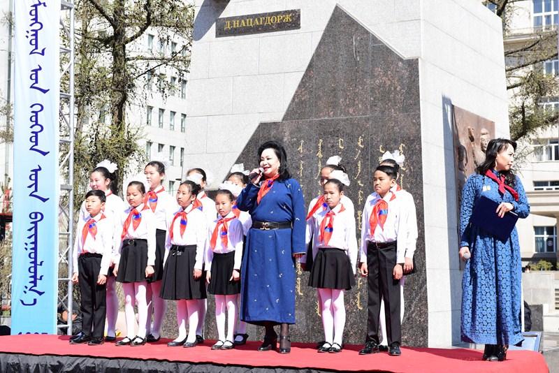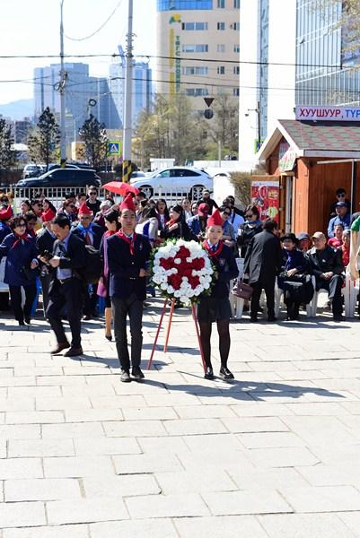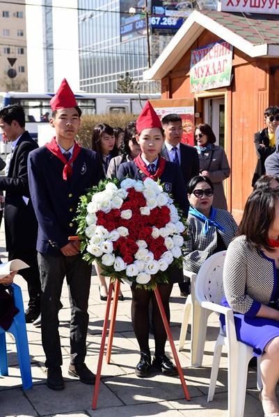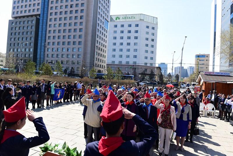 Уг өдрийг тохиолдуулан хүүхдийн байгууллагыг үндэслэгч, их зохиолч Д.Нацагдоржийн хөшөөнд хүндэтгэл үзүүлж, цэцэг өргөлөө.