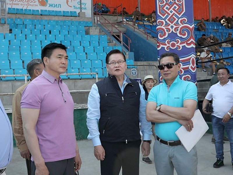 Тулгар төр байгуулагдсаны 2228, Их Монгол улсын 813, Ардын хувьсгалын 98 жилийн ой, Үндэсний их баяр наадмыг зохион байгуулах комиссынхон буюу Монгол Улсын шадар сайд, Үндэсний их баяр наадмыг зохион байгуулах хорооны дарга Ө.Энхтүвшин, нийслэлийн Засаг дарга бөгөөд Улаанбаатар хотын захирагч С.Амарсайхан тэргүүтэй албаныхан төв цэнгэлдэх хүрээлэн, шагай, сурын талбайн урсгал засварын явц, наадмын бэлтгэл ажилтай танилцлаа.