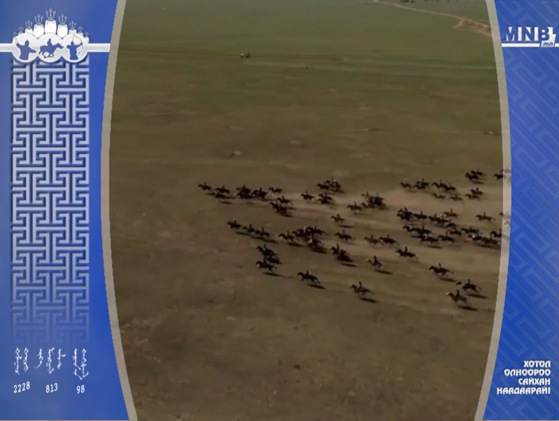Хурдан соёолонгийн уралдааныг Ховд аймгийн Мөст сумын харьяат Б.Буяннэмэхийн хээр үрээ өнгөлж явна. Сэлэнгэ аймгийн Мандал сумын уяач Очирсүрэнгийн зээрд, Архангай аймгийн Өндөр-Улаан сумын уяач Д.Эрдэнэболдын хонгор үрээ арын үрээнүүдээсээ тасарсан уралдаж байна.