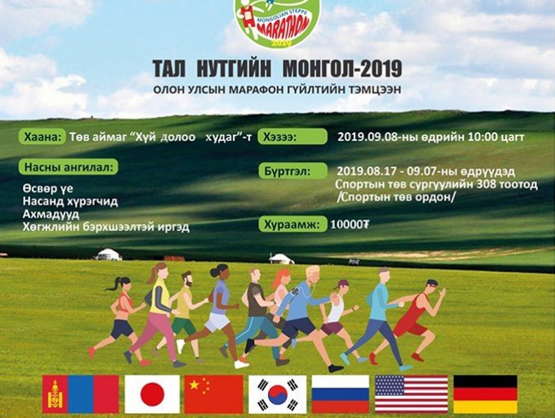 | “Тал нутгийн Монгол” олон улсын марафон гүйлтийн тэмцээн болно | ||