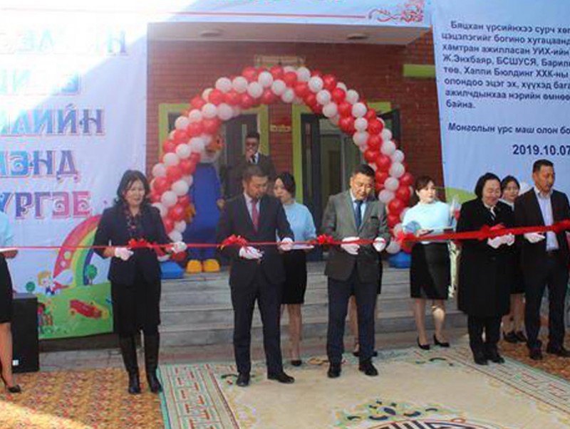 280 хүүхдийн хүчин чадалтай, 12 бүлгийн 50 багш, ажилтантай уг цэцэрлэгийн барилгыг Улсын төсвийн хөрөнгө оруулалтаар 2018-2019 онд он дамжин Барилгын хөгжлийн төв захиалагчийн хяналт тавьж, 4.0 тэрбум төгрөгийн төсөвт өртөгөөр “Хаппи бюлдинг” ХХК барьж гүйцэтгэжээ.