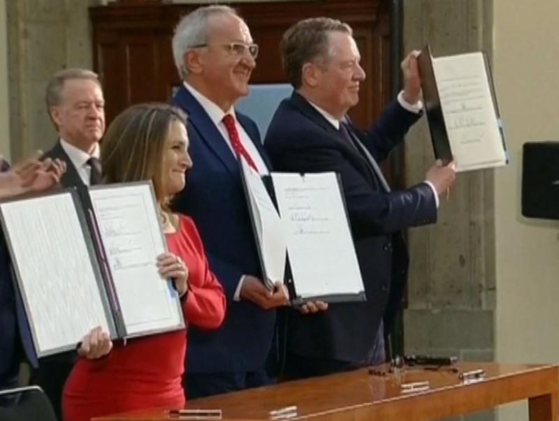 Хойд Америкийн чөлөөт худалдааны гэрээг дахин шинэчиллээ. 2018 онд гурван улсын баталсан шинэ гэрээнд ажилчдын эрх ашгийг хамгаалах, биологийн гаралтай эм бэлдмэлийн үнийг бууруулах заалтууд нэмж тусган мягмар гарагт баталсан байна. Мексикийн Ерөнхийлөгч Андрес Мануэль Лопес Обрадор, Канадын Ерөнхий сайд Кристя Фриланд, Америкийн худалдааны төлөөлөгч Роберт Лайтхайзер, Цагаан ордны ахлах зөвлөх Жаред Кушнер нар Мехико хотод цуглаж, гарын үсэг зуржээ.