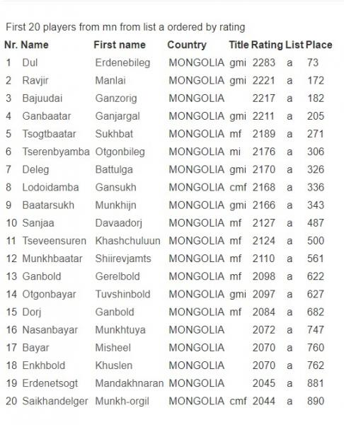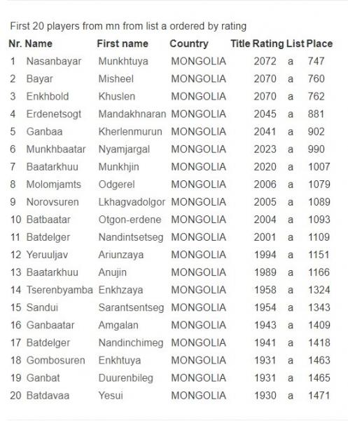 Дэлхийн даамын холбооны улирал тутам шинэчлэгддэг чансаа нийтэд ил боллоо. Уг чансааны жагсаалтад Монголын даамчдыг