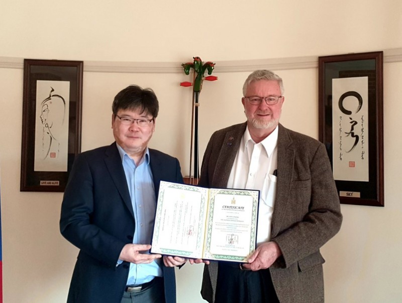 | Австрали Улсад ажиллах Монгол Улсын Соёлын элч Жон Лантрид гэрчилгээг нь гардуулав | ||