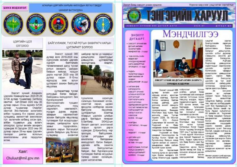 Мөн тус анги дотооддоо “Зэвсэгт хүчний анги, байгууллагуудын цэргийн сэтгэл зүйн хангалтыг шалгаж, үнэлэх” зааврын дагуу Зэвсэгт хүчин болон өөрийн анги, салбаруудын үйл ажиллагааг сурталчлах, харьяа тусгай ротуудын өдөр тутмын үйл ажиллагаа, гүйцэтгэж байгаа үүрэг, онцлогийг ангийн бие бүрэлдэхүүнд тайлбарлан таниулах зорилгоор “Тэнгэрийн харуул” сонин эмхтгэн гаргасан байна.