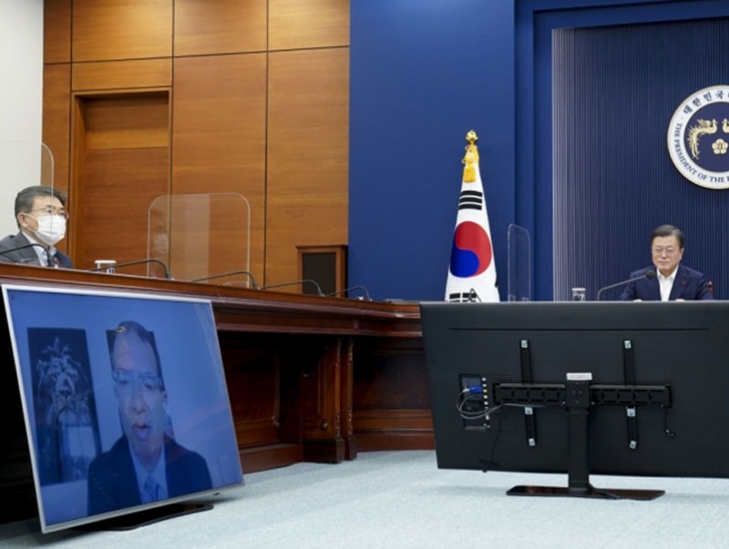 Цахимаар хийсэн хуралдааны үеэр Өмнөд Солонгосын Ерөнхийлөгч Мун Жэ Ин, "Модерна" компанийн гүйцэтгэх захирал нар вакцин худалдан авах, нийлүүлэх асуудал дээр зарчмын тохиролцоонд хүрчээ.