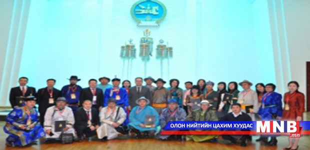 Монгол Улсын Ерөнхийлөгчийн ивээл дор зохиож буй “Бичиг соёл-2014” монгол бичгийн олон улсын үзэсгэлэнд оролцохоор хүрэлцэн ирсэн монгол туургатны төлөөлөгч, уран бүтээлчид өнөөдөр морин цагт Төрийн ордны Есөн хөлт их цагаан сүлдэд хүндэтгэл үзүүллээ.