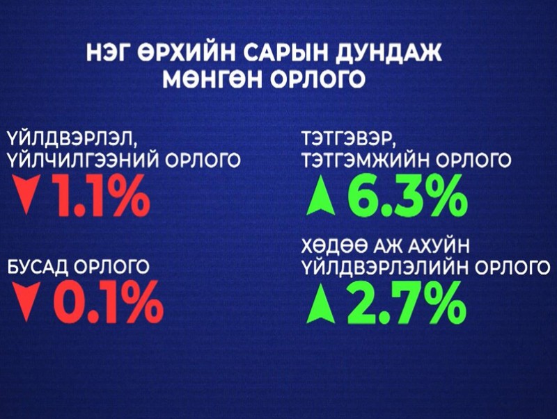 Гэтэл тэтгэвэр тэтгэмжийн орлогын эзлэх хувь 6.3 нэгж хувиар, хөдөө аж ахуйн үйлдвэрлэлийн орлогын эзлэх хувь 2.7 нэгж хувиар нэмэгдсэн байна.