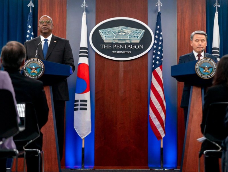 АНУ-ын Батлан хамгаалахын сайд Ллойд Остин Өмнөд Солонгосын Батлан хамгаалахын сайд Ли Жон Сапыг хүлээн авч, хоёр орны зэвсэгт хүчний хамтарсан "Эндрью" агаарын цэргийн баазаар зочилж, байлдааны орчин үеийн зэвсэг "Би-52", "Би-1" бөмбөгдөгч онгоцуудыг үзэж сонирхжээ.
