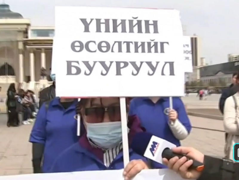 MNB "Монголын Мэдээ" суваг үзүүлж байна: МҮЭХ-ноос Засгийн газарт шаардлага тавьж, тайван жагсаал хийж байна.