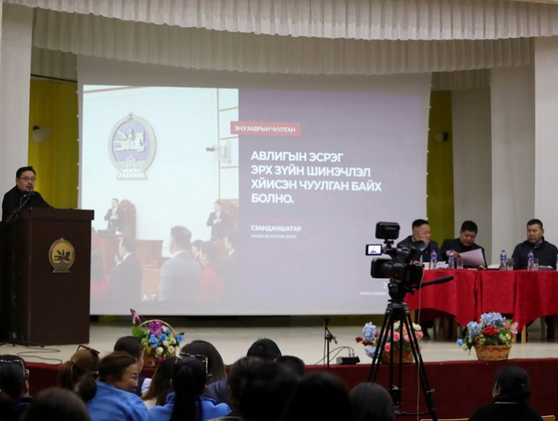 Тэрбээр УИХ-ын гишүүн Ж.Батжаргалын хамтаар өнөөдөр Төв аймгийн Жаргалант сумын иргэд, төрийн албан хаагчдын төлөөлөлтэй уулзалт хийж, Үндсэн хуульд оруулах өөрчлөлтийн төсөл болон төрийн албаны шинэчлэлийн талаар мэдээлэл танилцуулж, саналыг нь сонслоо. УИХ-аас төрийн албаны шинэчлэлийг бүх шатанд, цогцоор нь хэрэгжүүлэх зорилт дэвшүүлсэн. Энэ хүрээнд бүтээмжид суурилсан цалингийн сүлжээ бий болгож, төрийн албан хаагчдын нийгмийн баталгааг хангах болон хариуцлагыг бүх шатанд нэмэгдүүлэх чиглэлээр эрх зүйн шинэчлэл хийж байна.