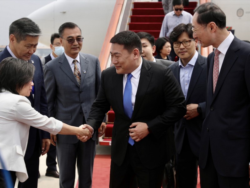 Ерөнхий сайдыг БНХАУ-ын Гадаад хэргийн дэд сайд Сүнь Вэйдун, БНХАУ-аас Монгол Улсад суугаа Онц бөгөөд Бүрэн эрхт Элчин сайд Цай Вэньруй болон Монгол Улсаас БНХАУ-д суугаа Онц бөгөөд Бүрэн эрхт Элчин сайд Т.Бадрал, ЭСЯ-ны ажилтнууд угтав.
