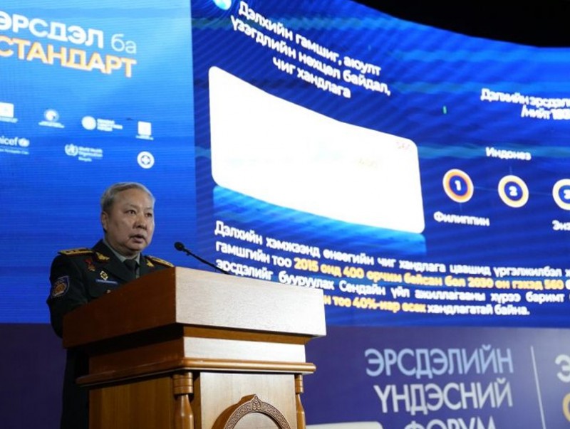 Эрсдэлийн үндэсний форумын хүрээнд ОБЕГ-ын дарга, хошууч генерал Г.Ариунбуян “Дэлхийн болон үндэсний түвшний гамшгийн эрсдэлийн өнөөгийн байдал, хандлага” сэдвээр илтгэл танилцууллаа.