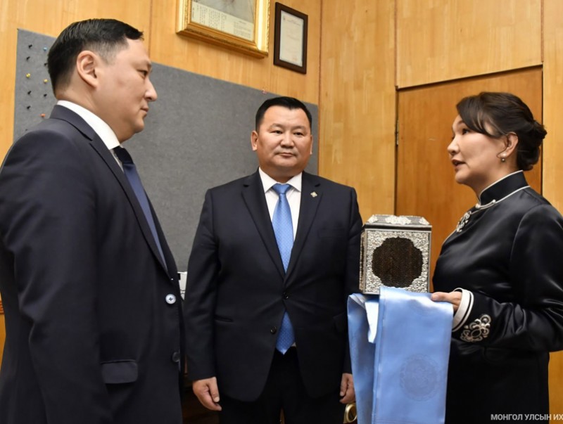 Ерөнхий нарийн бичгийн дарга нарын ажлыг Улсын Их Хурлын дэд дарга Л.Мөнхбаатар хүлээлцүүлэхдээ, Улсын Их Хурлын тогтоолыг уншиж танилцуулан, хэн хэнд нь шинэ ажилд томилогдсонд баяр хүргэв. Тэрбээр, Улсын Их Хурлын Ерөнхий нарийн бичгийн даргын болон Үндсэн хуулийн цэцийн гишүүний албан тушаалыг Монголын нэр хүндтэй хуульч, төрийн зүтгэлтүүд хашиж ирсэн өндөр хариуцлагатай ажлууд болохыг онцолж, амжилт хүслээ.
