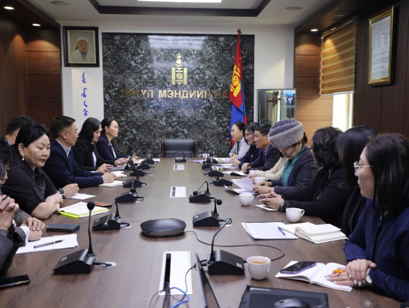 Уулзалтад Хөдөлмөр, нийгмийн хамгааллын яамны Төрийн нарийн бичгийн дарга Э.Ганхүү, Эрүүл мэндийн яамны Төрийн нарийн бичгийн дарга С.Төгсдэлгэр, Зөвлөлийн гишүүн Н.Нямдорж, П.Цэвээн болон холбогдох асуудал хариуцсан албан хаагчид оролцов.