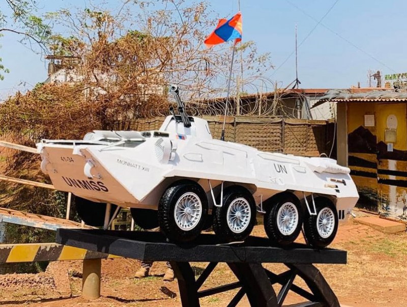 БНӨСУ-д үүрэг гүйцэтгэж байгаа энхийг сахиулагчид өөрсдийн хөлөглөдөг үндсэн зэвсэглэл техник болох БТР-80 хуягт тээвэрлэгчийн дурсгалын загварыг бүтээж, МОНБАТТ-ынхаа угталтын хаалга дээр байрлуулан олноо толилуулсан байна.