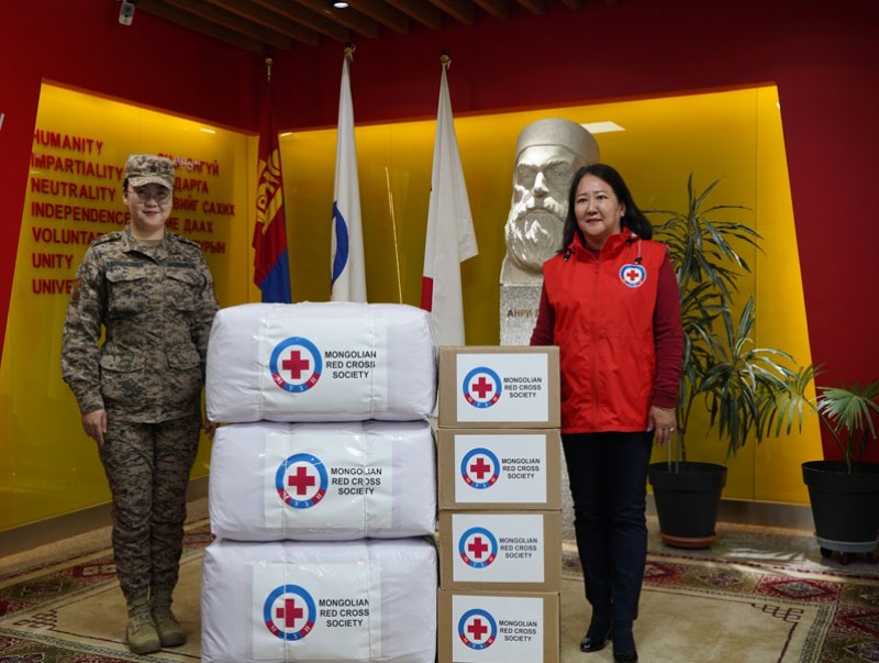 Монголын улаан загалмай нийгэмлэгээс Бүгд Найрамдах Өмнөд Судан Улсад явагдаж буй НҮБ-ын мандаттай "UNMISS" энхийг дэмжих ажиллагаанд үүрэг гүйцэтгэх Монгол Улсын Зэвсэгт хүчний XIV ээлжийн цэргийн багт хүмүүнлэгийн тусламж болгон хувцас хэрэглэл, ариун цэврийн хэрэгсэл хүлээлгэн өглөө.