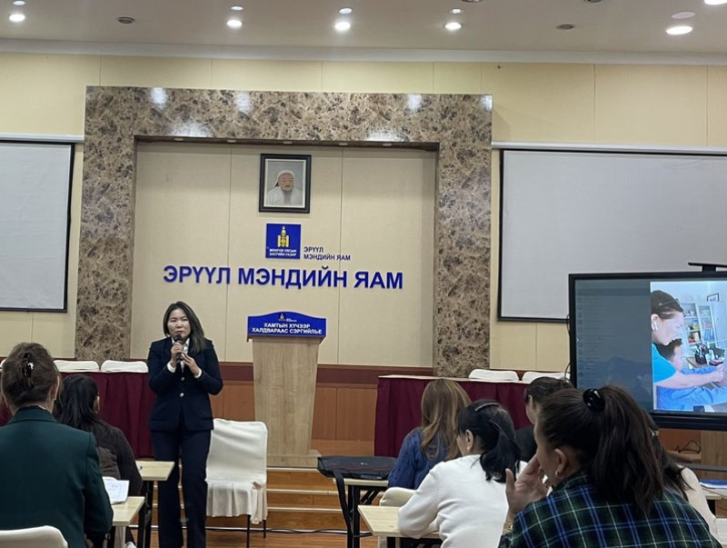 Энэ хүрээнд Баянзүрх, Хан-Уул дүүрэг дэх төрийн болон төрийн бус өмчийн ерөнхий боловсролын 50 сургуульд холын, ойрын, стерео хараа шалгах багцыг хүлээлгэн өгөв. Мөн сургуулийн удирдлага, эмч нарт хараа шалгах үзлэгийн зохион байгуулалт болон үзлэгийн бүртгэлийг eruulhuuhed.mn вэбэд суурилсан цахим программд оруулах талаар мэдээлэл өгч, үзлэг зохион байгуулсан сургуулийн эмч туршлагаа хуваалцлаа.