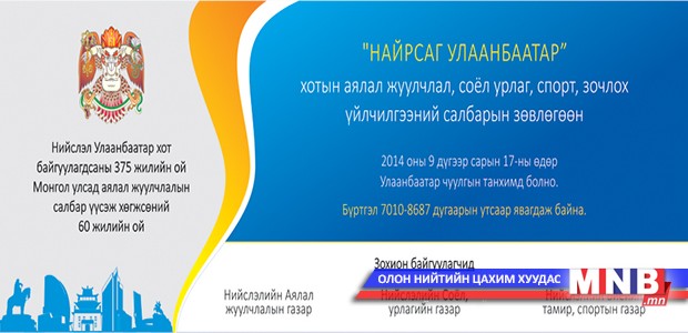 Монгол Улсад аялал жуулчлалын салбар үүсч хөгжсөний 60 жилийн ой, Улаанбаатар хотын 375 жилийн ойн хүрээнд Нийслэлийн Аялал жуулчлалын газар, Соёл урлагийн газар, Биеийн тамир, спортын газар хамтран “Найрсаг Улаанбаатар” зөвлөлгөөнийг маргааш 09 цагаас Улаанбаатар чуулгын байранд зохион байгуулах гэж байна. Зөвлөлгөөнд Улаанбаатар хотод аялал жуулчлал, зочлох үйлчилгээ, соёл урлаг, спортын төлбөрт үйлчилгээ үзүүлдэг 600 гаруй аж ахуйн нэгж оролцоно. Улаанбаатар хот 2030 он гэхэд таван сая жуулчин хүлээж авдаг болох томоохон зорилтыг тавьсан. Энэхүү зорилтод хүрэх “Найрсаг Улаанбаатар” хөтөлбөрийн ач холбогдол, зорилгыг зөвлөлгөөний үеэр оролцогчдод танилцуулна. Мөн нийслэл хотод аялал жуулчлал, соёл урлаг, спорт, энтертайнмент чиглэлээр үйл ажиллагаа явуулж буй байгууллагуудын ажлыг төрийн байгууллагын ажилтай хэрхэн уялдуулах талаар хэлэлцэнэ. Энэ үеэр цаашид хотын аялал жуулчлалын онцлог үйлчилгээ, шинэ бүтээгдэхүүнүүдийг хамтран гаргах талаар зөвшилцөх юм. Зөвлөлгөөнд нийслэлийн Засаг дарга бөгөөд Улаанбаатар хотын Захирагч Э.Бат-Үүл оролцоно гэж Нийслэлийн ЗДТГ-ын Хэвлэл мэдээлэл, олон нийттэй харилцах хэлтсээс мэдээллээ.