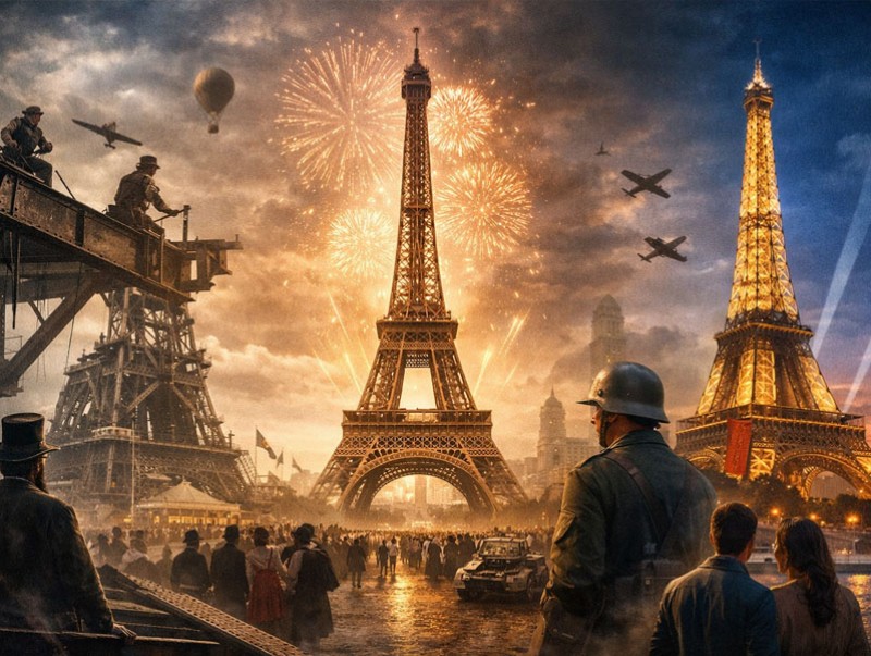 Эйфелийн цамхгийг Францын инженер Гюстав Эйфель зохион бүтээж, 1889 онд болсон Дэлхийн үзэсгэлэнд зориулан барьсан байна. Энэхүү үзэсгэлэн нь Францын хувьсгалын 100 жилийн ойд зориулсан томоохон арга хэмжээ байсан юм.