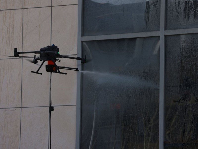 "Хоббизоон” ХХК-ийн Ерөнхий менежер Б. Мөнхсүлд “Барилгын гадна фасад, замын гэрлэн дохио зэрэг өндөрт байрлах хэсгийг угаахад ашиглаж буй DJI Matrice 400 дрон нь 6 кг хүртэлх даацтай. Энэхүү дрон нь нэг цагт 800 ам метр хүртэлх талбайг цэвэрлэх хүчин чадалтай буюу таван хүний нэг өдөрт хийх ажлыг ойролцоогоор хоёр цагийн дотор гүйцэтгэх боломжтой. Мөн холболтын шланкны уртаас шалтгаалан 50-100 метрийн өндөрт ажиллах боломжтой” гэлээ.