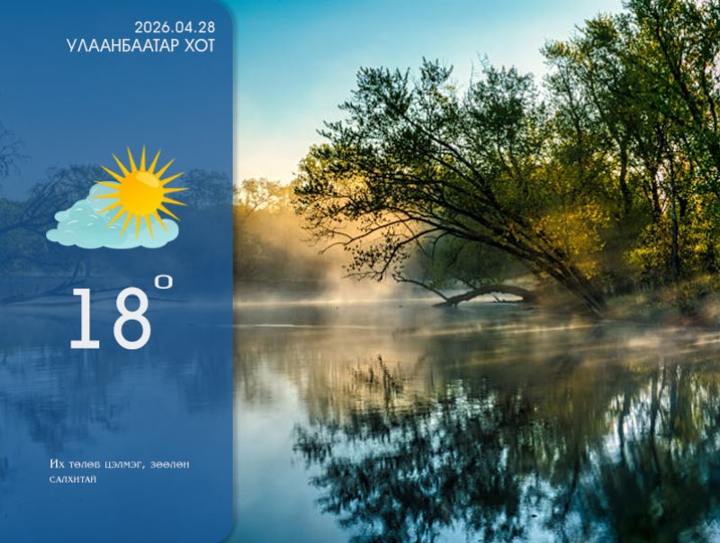 УЛААНБААТАР ХОТ ОРЧМООР: Их төлөв цэлмэг, зөөлөн салхитай. Өмнөх өдрөөс 7 хэмээр дулаарч 16-18 хэм дулаан байна.