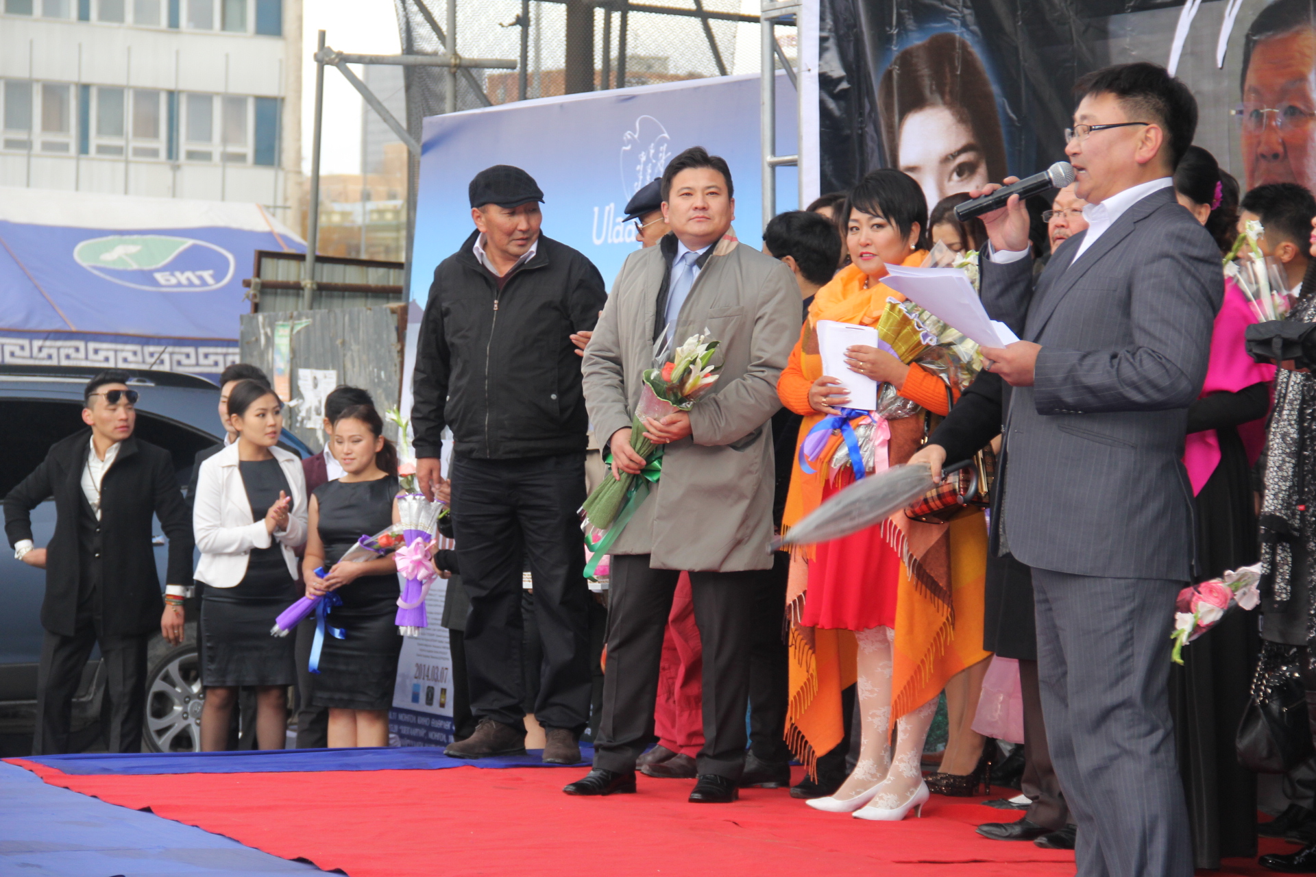 Найруулагч Н.Наранбаатар нээж үг хэлэхдээ “Өнөөдөр намрын дунд сарын билэгт сайн өдөр. Энэ өдөр бид шинэ уран бүтээлээ үзэгч олондоо хүргэж байгаадаа баяртай байна. Кинонуудын нээлтийг хараад байхад жүжигчдээ үнэтэй машинаас буулгаж, улаан хивсэн дээгүүр алхуулаад байдаг болж. Гэхдээ бид түүнийг давтая гэж бодсонгүй. Өнөөдөр гадаа хэдийгээр жиндүү, хүйтэн байгаа ч бид үзэгч олныгоо хүндэлж энэхүү тайзан дээр зогсож байна. Кинонд тоглосон, ая хэмнэлийг нь тааруулсан, зохиол бүтээлийг нь туурвисан, дүр бүрийг амилуулсан уран бүтээлчдэдээ баярлалаа” гэв. Нээлтийн үеэр Тэнгис кино театрын үүдэнд намрын сүүлчийн бороо асгарлаа. Энэ нь киноны уран бүтээлчдийн зүгээс жүжигчдэдээ болоод киног үзэхээр ирсэн үзэгчдэд зориулсан гэнэтийн бэлэг байв. Яг л шиврээ бороо зөөлөн дуслах шиг, тэр бороо намрын сүүлчийн бороо биш байгаа гэж сэтгэл гэгэлзүүлж байлаа. “Бороонд” норсон үзэгчид болоод жүжигчид дэлгэцийн бүтээлээ олонд үзүүлж, дүн тавиулахаар танхим өөд чиглэв. Энэ үеэр тус киноны зарим уран бүтээлчидтэй хөөрөлдснөө дор сийрүүлье.