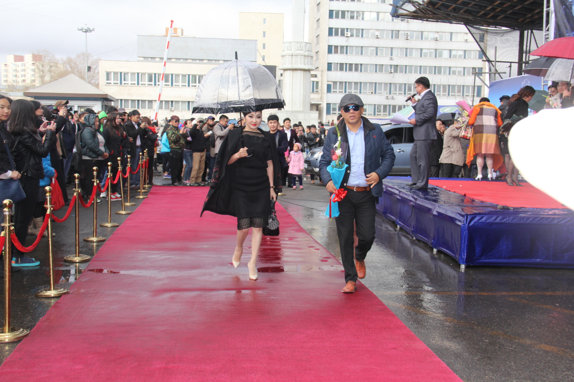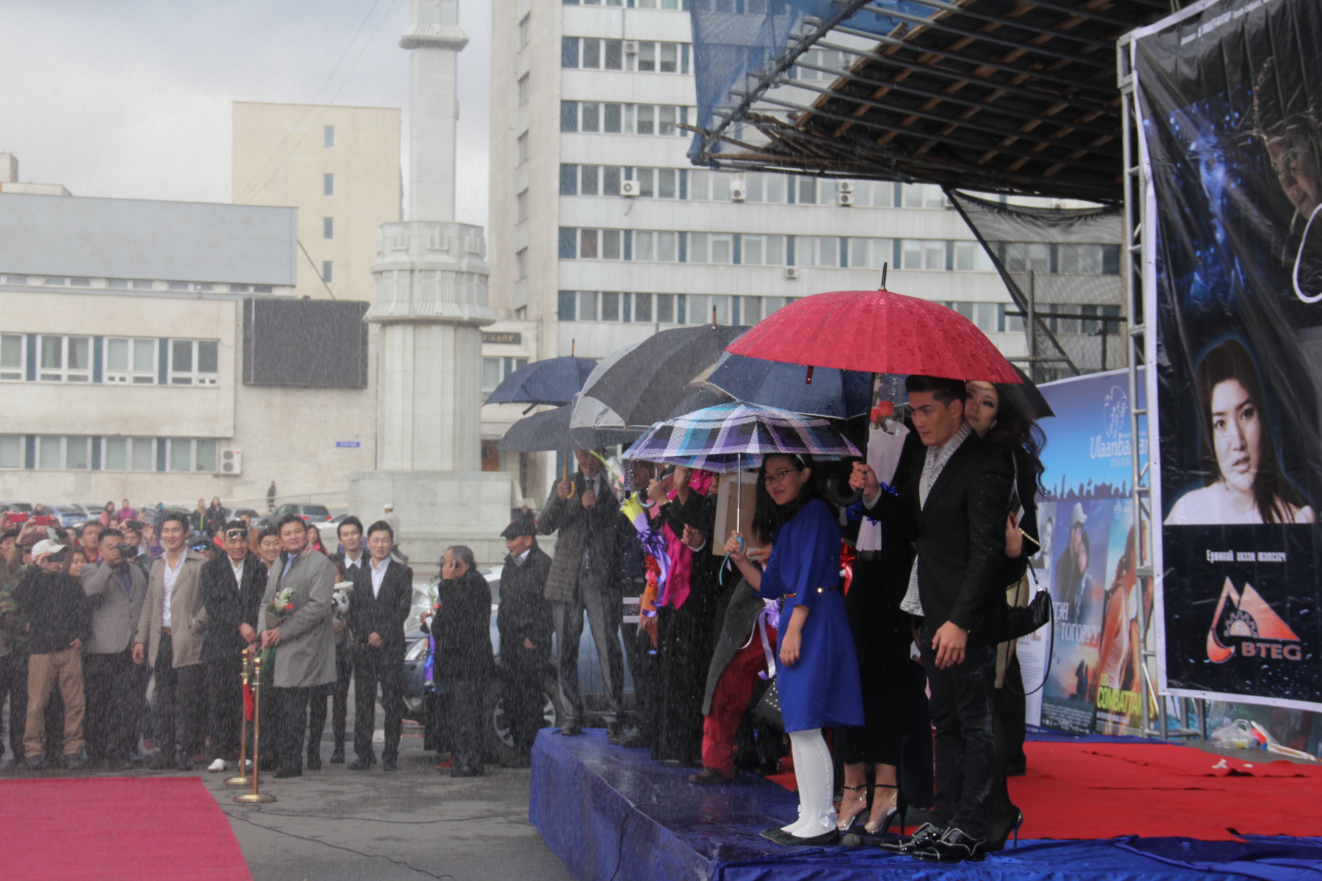 Киноны нээлтэн дээр намрын "сүүлчийн" бороо асгарсан бол үдэш нь зөөлөн цас бударч байв.