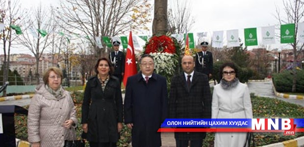 Цэцэг өргөсний дараа Монгол, Туркийн төрийн дуулал эгшиглүүлж, Элчин сайд Б.Батхишиг, тус хотын Чанкаяа дүүргийн орлогч дарга Гүлсүн Бор Гүнер нар харилцан баяр хүргэж үг хэлэв.Уг ёслолд Туркийн Гадаад хэргийн яам болон Анкара хот, дүүргийн захиргааны хариуцлагатай ажилтнууд, тус хотод суралцаж, ажиллаж байгаа Монгол иргэд оролцов. Анкара хотын Цагдаагийн академийн монгол оюутнууд дүрэмт хувцастайгаа жагсаж хүндэтгэл үзүүлэв.