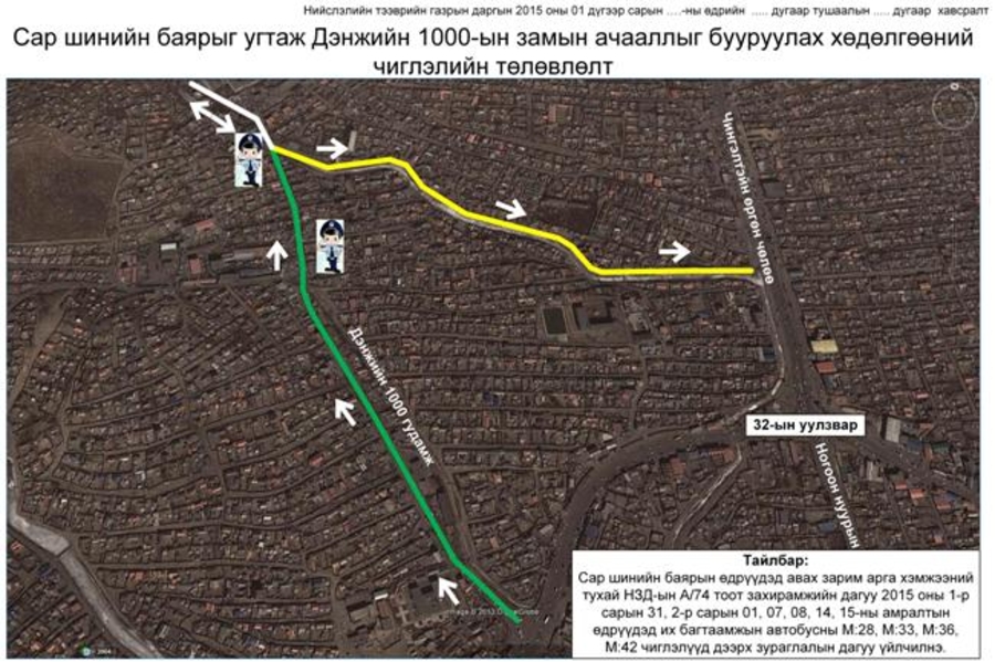 Нийслэлийн Засаг даргын “Сар шинийн баярыг угтсан зарим арга хэмжээний тухай” А/74 тоот захирамжийн дагуу сар шинийн баяр болох гэж байгаатай холбогдуулан нийслэлийн замын хөдөлгөөний ачааллыг бууруулах зорилгоор амралтын өдрүүдэд автомашины улсын дугаарын сүүлчийн орноос хамаарч тэгш, сондгойгоор замын хөдөлгөөнд оролцуулж, нийтийн тээврийн буухиа үйлчилгээг явуулахаар болсон.