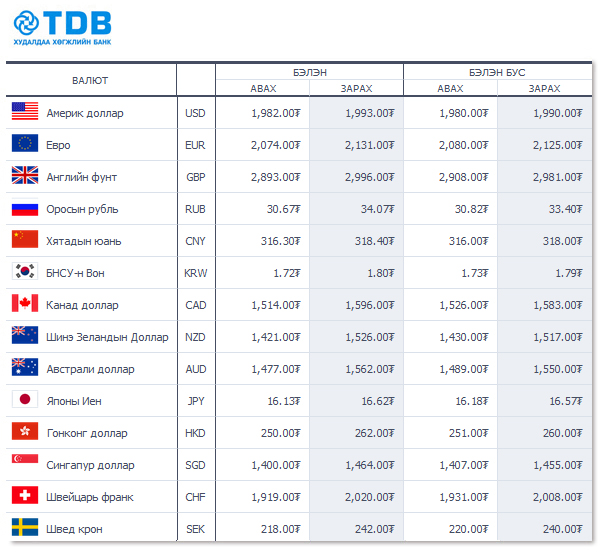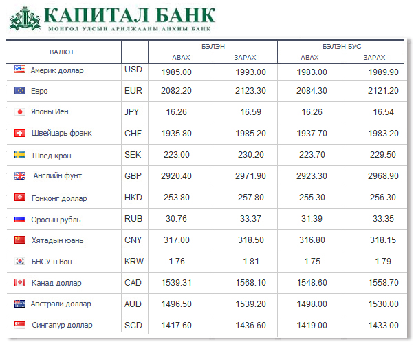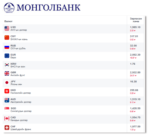 Өнөөдрийн байдлаар валютын ханш Монголбанк, арилжааны банкуудад ямар байгааг хүргэе.