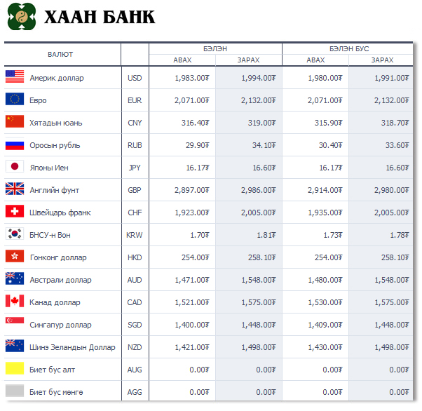| Өнөөдрийн валютын ханш /2015.03.17/ | ||