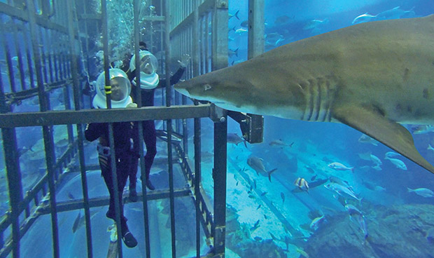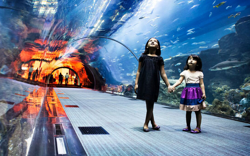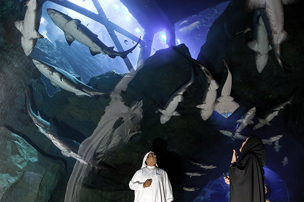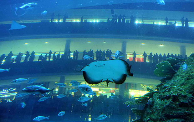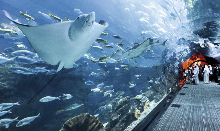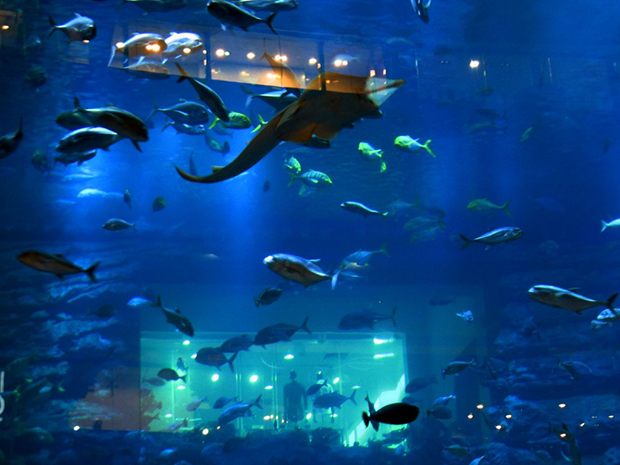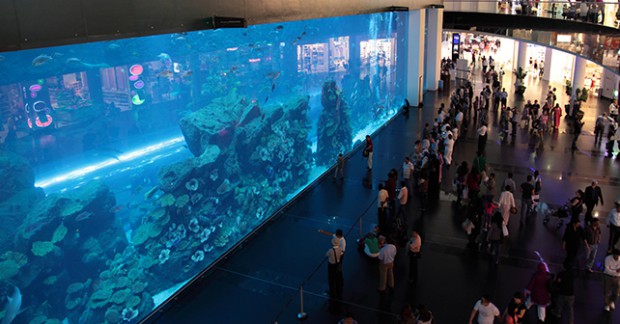 Хамгийн өндөр бөгөөд тансаг барилгуудаараа алдартай Арабын Нэгдсэн Эмират Улсын Дубай хотын аквариум цогцолбор нь ч дэлхийд хоёрт ордог. Тус хотын "Dubai Mall" цогцолборт орших "Дубай" аквариумд 33 мянга гаруй далай амьтан байдгаас 400 гаруй нь аврага загас аж. Нийт усны хэмжээ нь 10 сая литр.