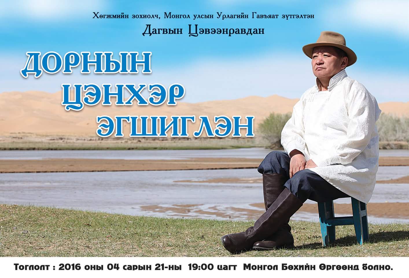 -Уг нь би энэ жилийн тоглолтоо өмнөх шигээ л хийе гэж бодсон ч хүмүүс “Та олон дуутай байж олон үзэгчдэд зориулж тогло” гэсэн даалгавар өгч, “Монгол бөхийн өргөө”-г сонгоод байна. Энэ миний 17 дахь тоглолт. Монгол Улсын Гавьяат жүжигчин Ө.Уянга, С.Батсүх, У.Далантай, С.Ганзориг нараас эхлээд өнөө цагт сайхан уран бүтээл төрүүлж яваа Х.Батмэнд, Ө.Түмэн-Өлзий, А.Хосбаяр нарын зэрэг уран бүтээлч оролцоно. Мөн ӨМӨЗО-ны дөрвөн дуучнаас гадна нэг зохиомж бэлдсэн ч одоо хэлмээргүй байна. Үзэгчид ирэхээрээ өөрсдөө мэдэг. Би дуунуудынхаа аялгууг ардын хөгжимд түлхүү суурилуулж, уламжлалаа гээлгүйгээр зохиодог. Үүгээрээ ч миний бүтээл онцлогтой. Би Ардын жүжигчин, хөгжмийн зохиолч Б.Дамдинсүрэн, Л.Мөрдорж гэдэг багшийн удирдлага дор хүмүүжсэн. Тэд маань намайг “Миний хүү Монгол уламжлалаа битгий орхиорой. Уламжлалаа гээнэ гэдэг түүхээ мартаж байгаатай адилхан шүү” гэж захиж байсныг нь үргэлж санаж явдаг. Тэгээд ч би багаасаа ардын хөгжим тоглох дуртай байсан минь өнөөдрийн уран бүтээлийг хийхэд нэмэр болж байгаа байх.