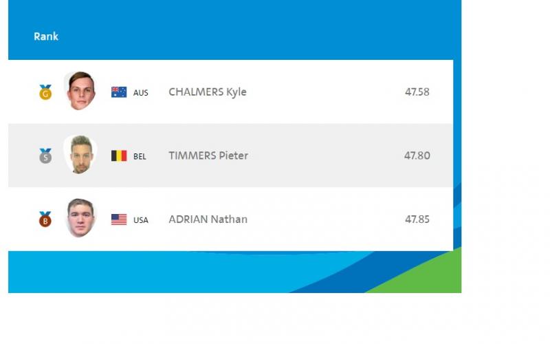 "Рио-2016" зуны олимпийн наадам усан сэлэлтийн аваргуудаа тодрууллаа. Эрэгтэйчүүдийн 100 метрийн чөлөөт сэлэлтийн аваргаар Австралийн тамирчин Кайл Чалмерс тодорлоо. 18 настай залуу тамирчин 47.58 секундээр нэгдүгээр байрт орсон бол хоёрдугаар байрыг Бельгийн тамирчин Питер Тиммерс 47.80-аар удааллаа. Тэрбээр мөнгөн медалийн эзэн болсон юм. "Лондон-2012" оны олимпийн наадмын аварга АНУ-ын тамирчин Натан Адриан энэ удаа 47.85-аар гуравдугаар байрт орж, хүрэл медаль хүртлээ.
