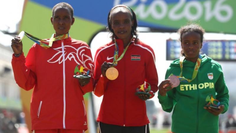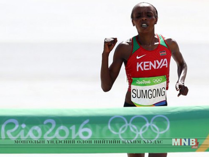 "Лондон марафон-2016" тэмцээний ялагч болж Риогийн олимпод оролцох эрхээ авсан Кенийн тамирчин Жемима Самгонг "Рио-2016" олимпийн наадмын марафоноос алтан медаль авлаа. Түүний хувьд анхны олимпоосоо алтан медаль авч буй юм. Мөн тэрбээр Кени улсын түүхэн дэх анхны алтан медалийг хүртэв.