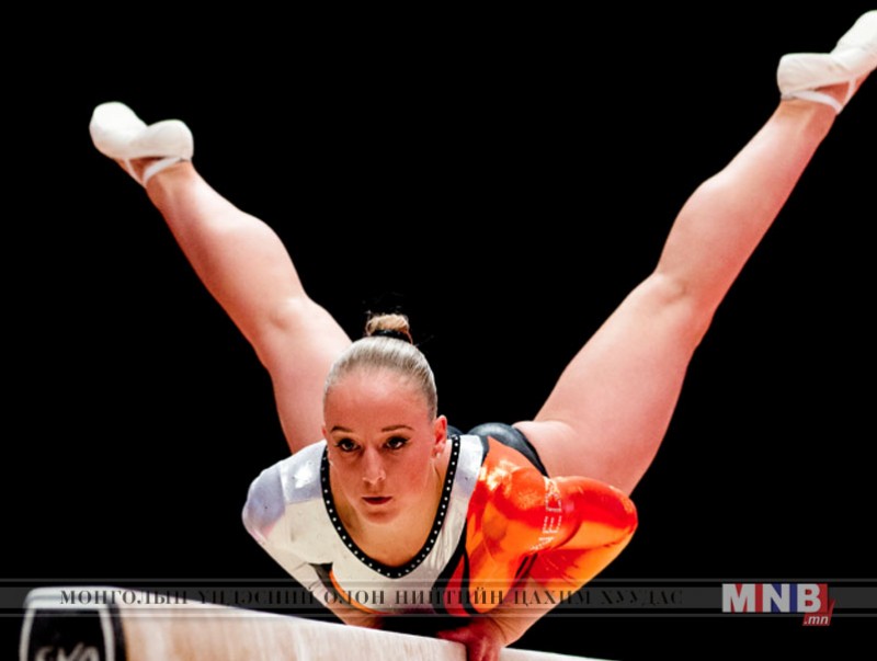 Хөнгөн атлетикийн тэмцээний эмэгтэйчүүдийн дамнуурган дээрх үзүүлбэрийн аваргаар Нидерландын тамирчин Санни Веверс 15,466 оноогоор алтан медаль, АНУ-ын тамирчин Лаурен Хернандес 15,333 оноогоор мөнгө, АНУ-ын тамирчин Симоне Билес 14,733 оноогоор хүрэл медалийн эзэн боллоо.